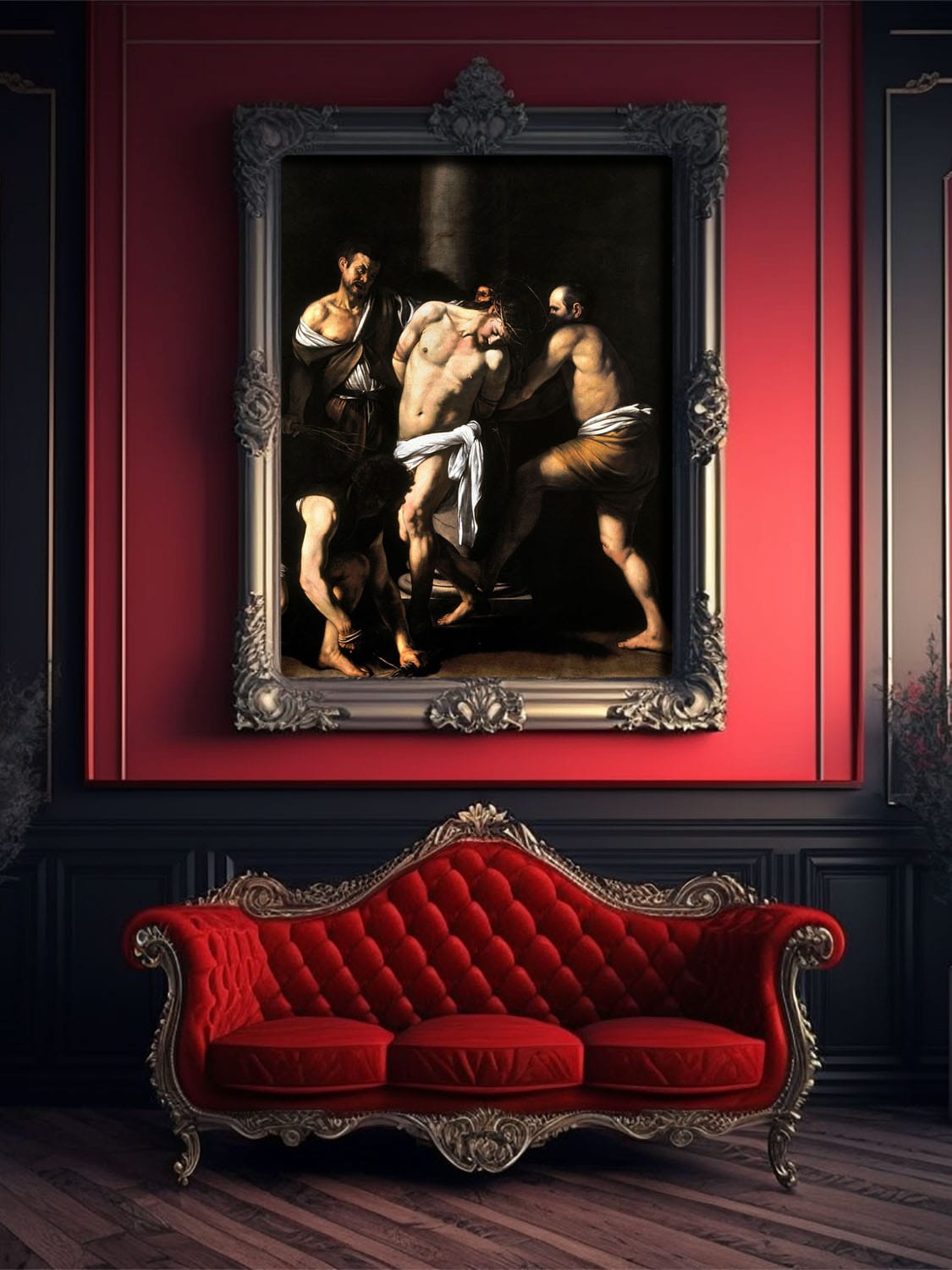 Add profound spiritual intensity to your home with *The Flagellation of Christ* by Caravaggio, a striking Baroque masterpiece that captures one of the most brutal and redemptive moments of the Passion. This powerful canvas reproduction evokes deep reflection on sacrifice, pain, and divine endurance, perfect for Lenten devotion and sacred interior spaces.
